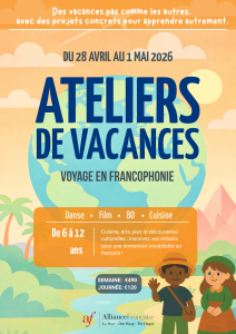 Pendant la période du 28 avril au 1er mai 2026, l’Alliance Française de La Haye propose un une semaine d’ateliers uniques sur le thème du Voyage en francophonie. Un programme riche, créatif et ludique pour découvrir la langue française autrement à travers des activités variées et inspirantes.